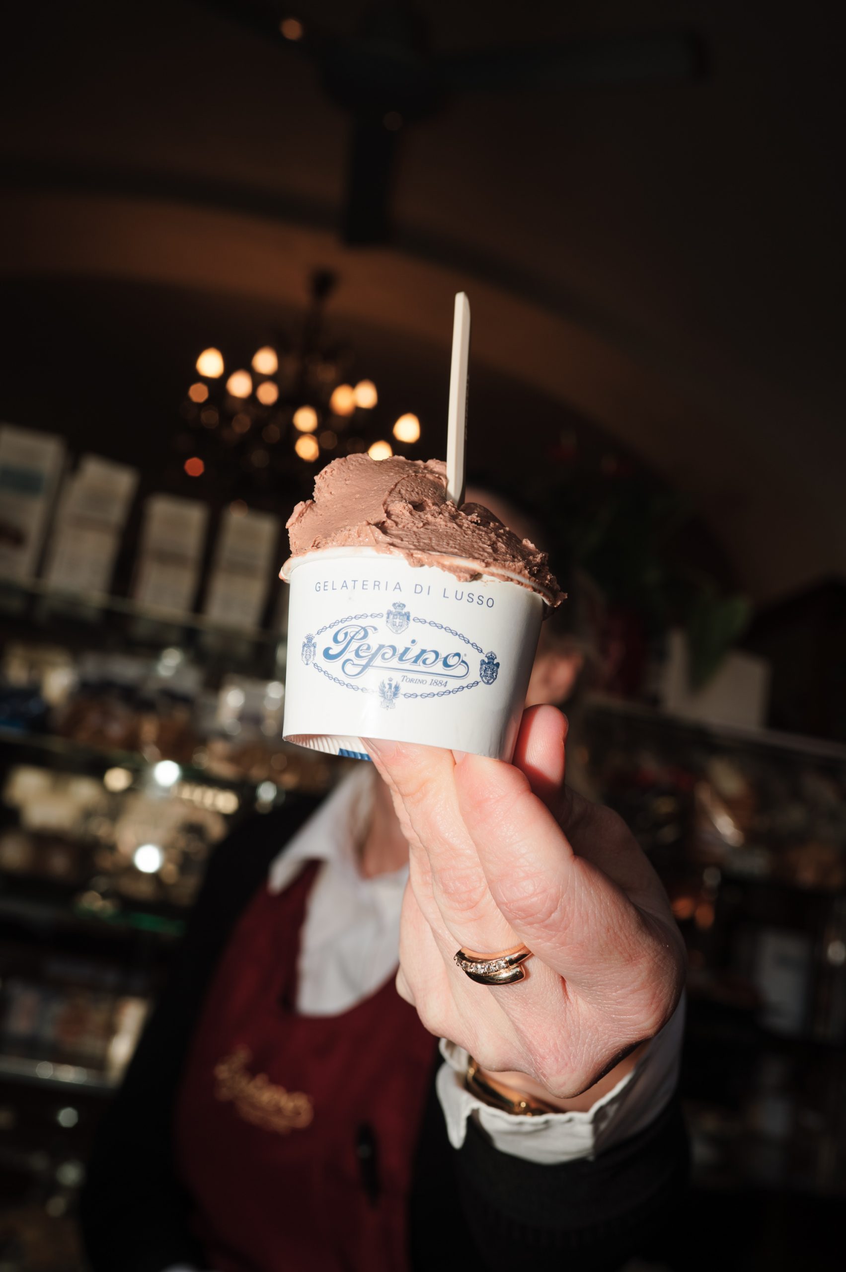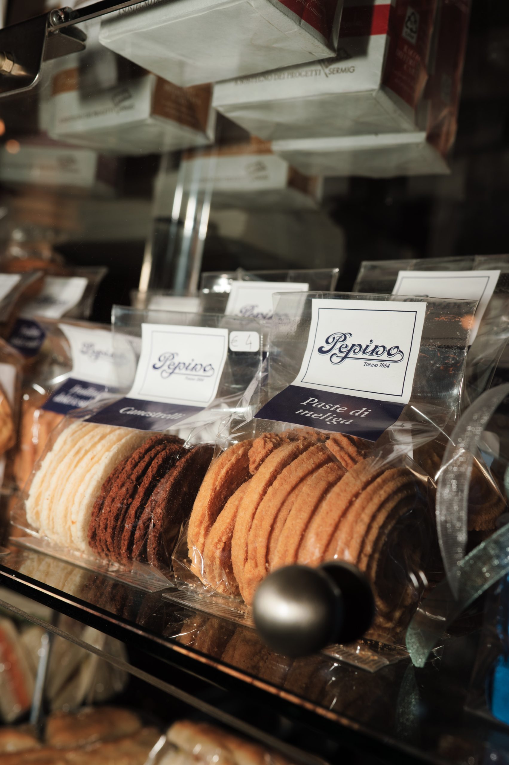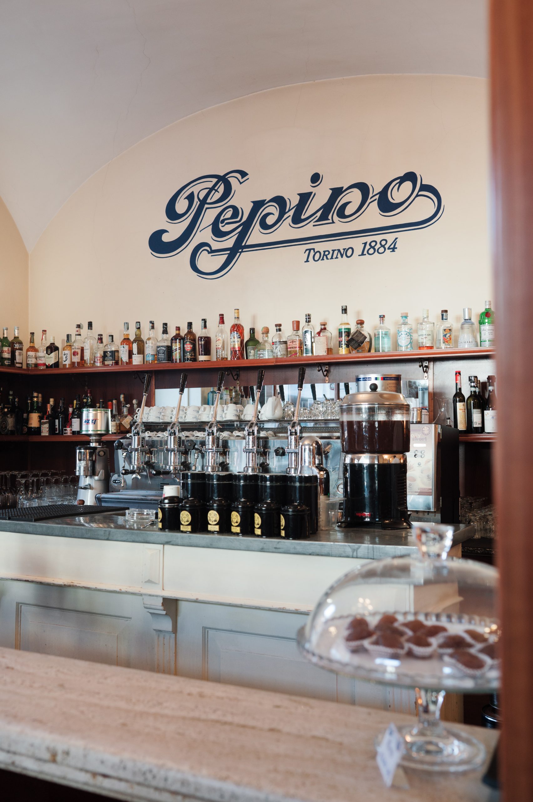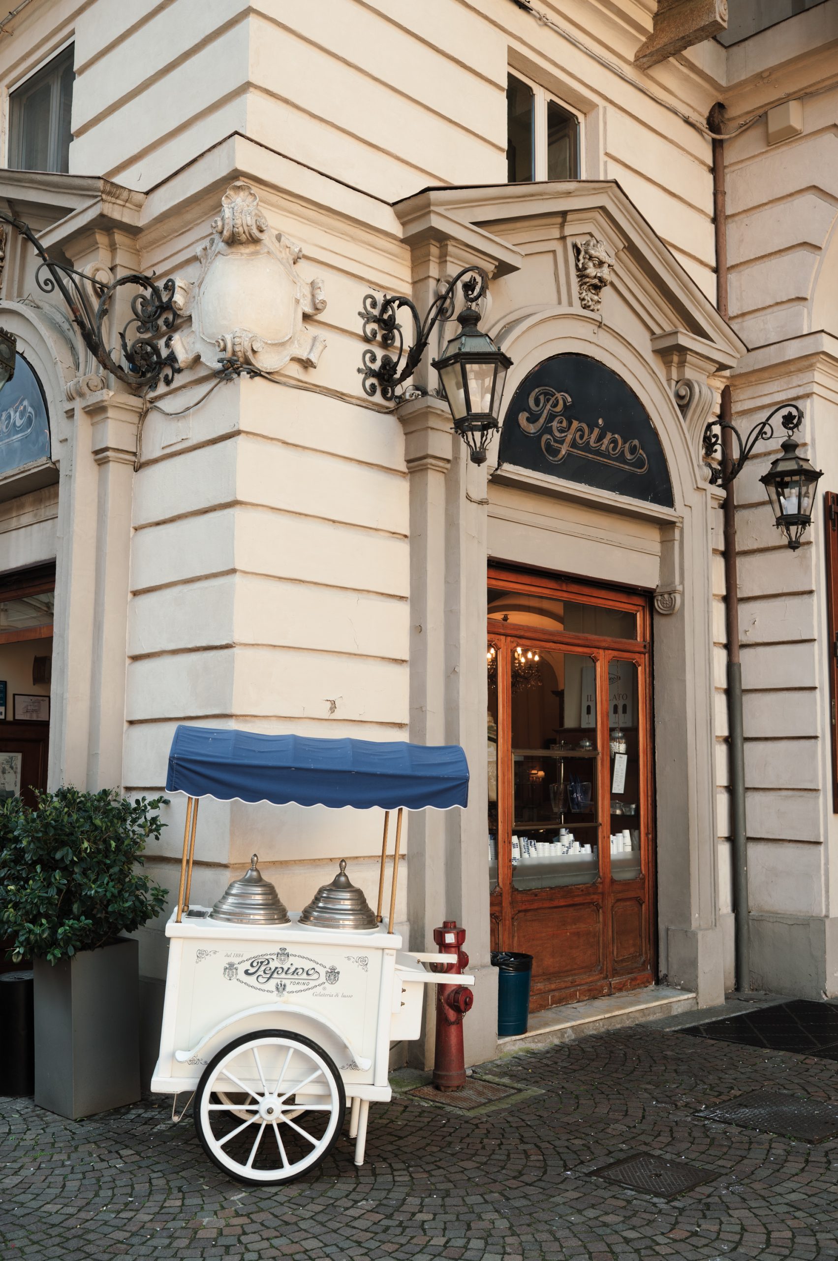 L’insegna su piazza Carignano: un’icona torinese. Oggi tra i Caffè Storici più importanti in Italia, Pepino lega la sua storia alla pasticceria fredda e a una piccola, grande invenzione.