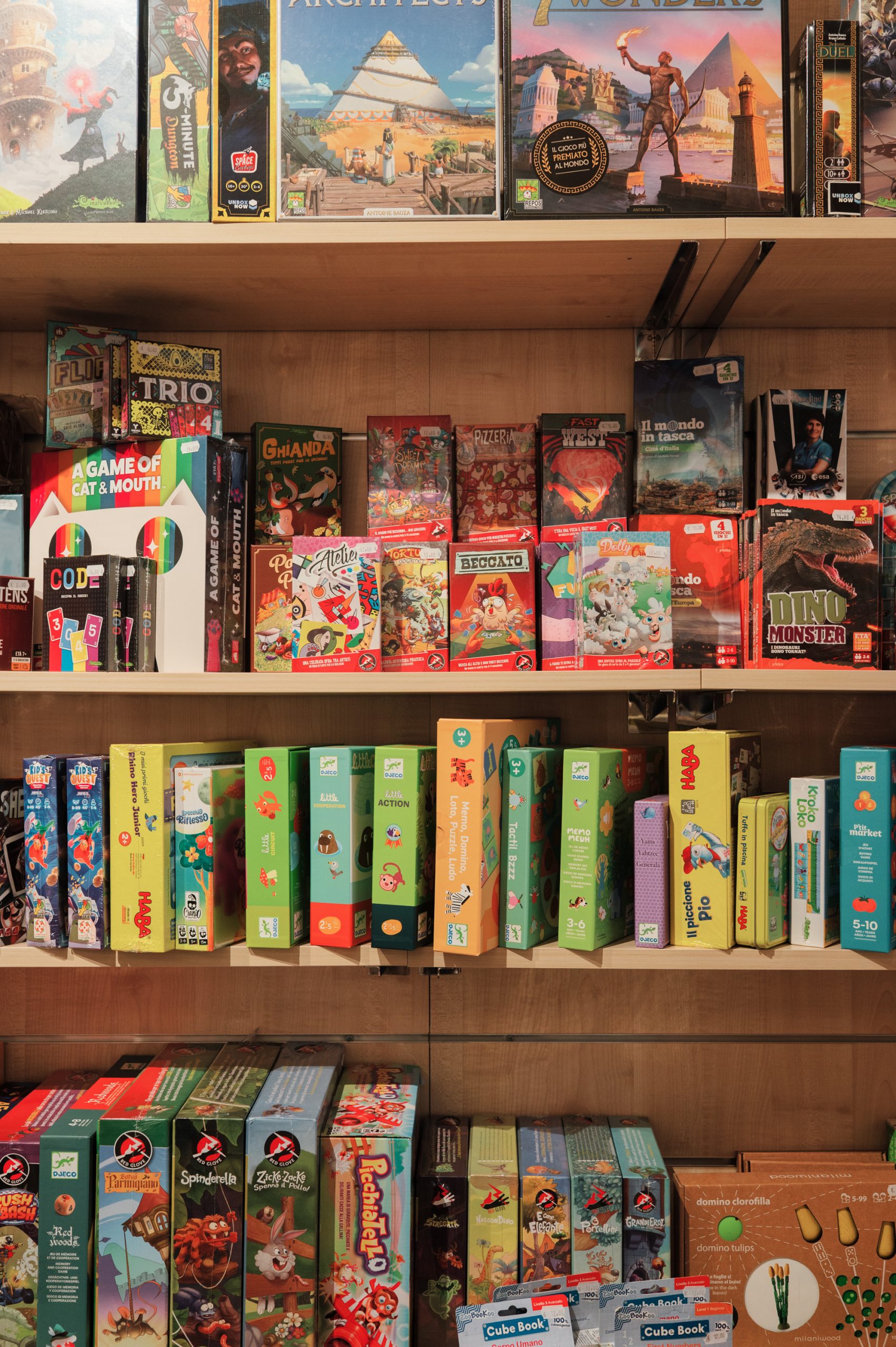 L’obiettivo è offrire a tutti e tutte il beneficio del gioco: si va dagli 0 ai 99 anni, dai giochi educativi in legno alle costruzioni, dai giochi di carte a quelli da tavolo. C’è infine una sezione dedicata ai libri per bambini — tutto questo, con una spiccata attenzione alla sostenibilità ambientale.