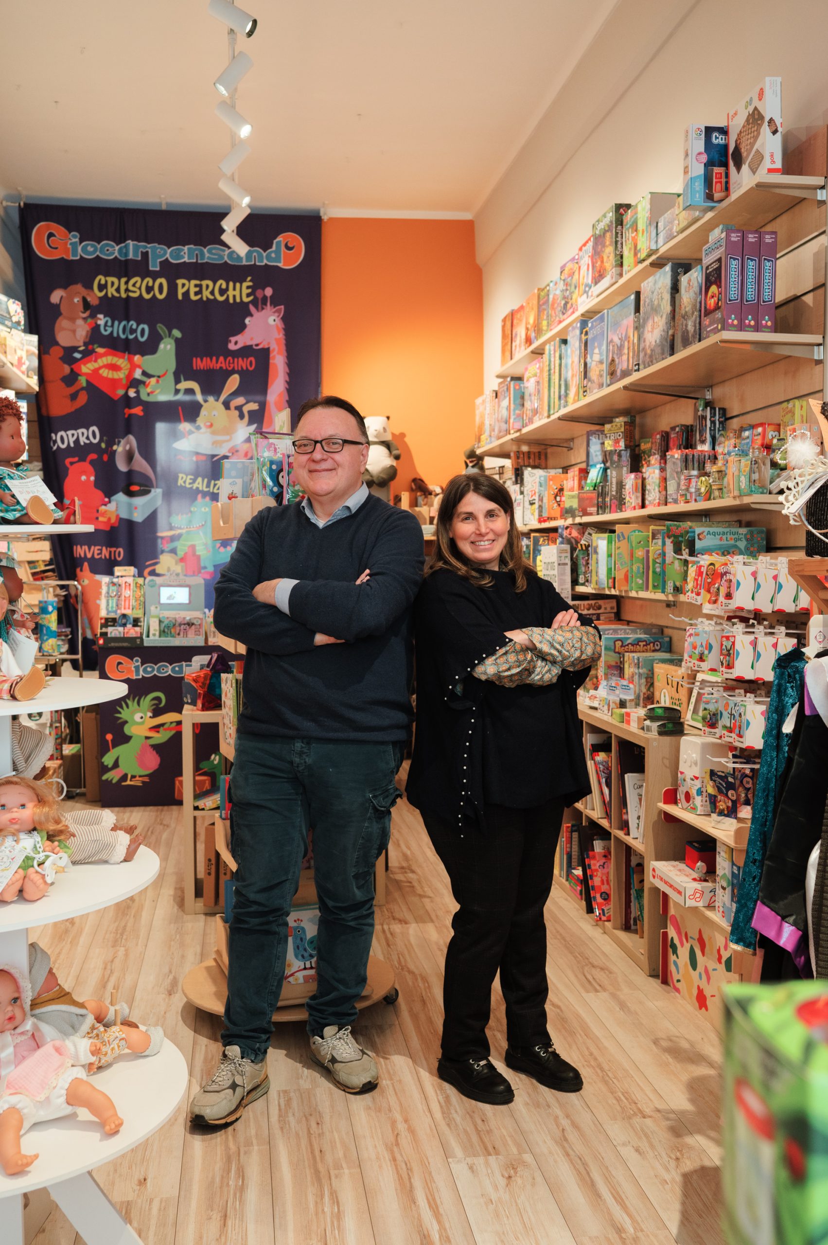 Giocarpensando debutta a Chivasso, nel 2011. Dopo quasi dieci anni di esperienza nel primo punto vendita, Giovanni Campanino e Orietta Carpentieri scelgono di estendere la loro proposta alla grande città. È il 2020, nel pieno della pandemia di Covid. Eppure, con gli abitanti e i negozianti di Crocetta scatta subito una familiarità inattesa.