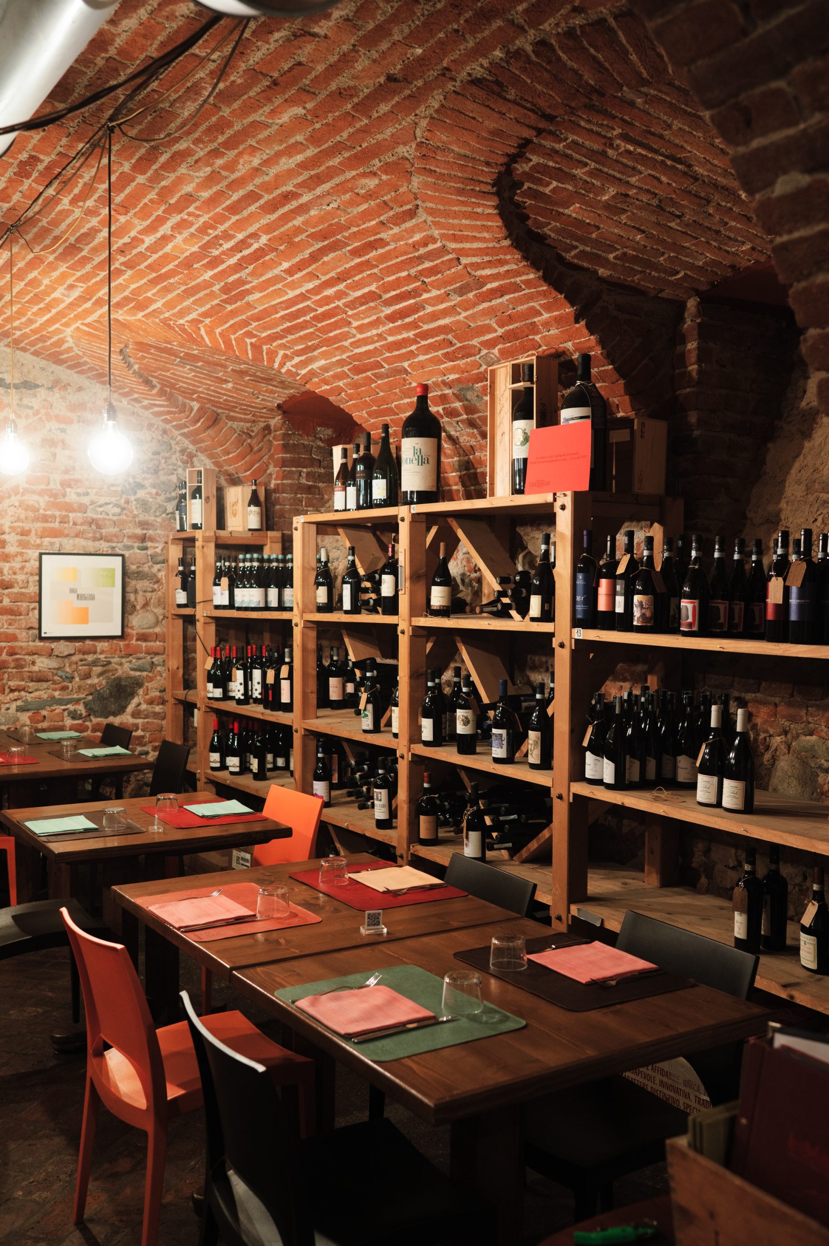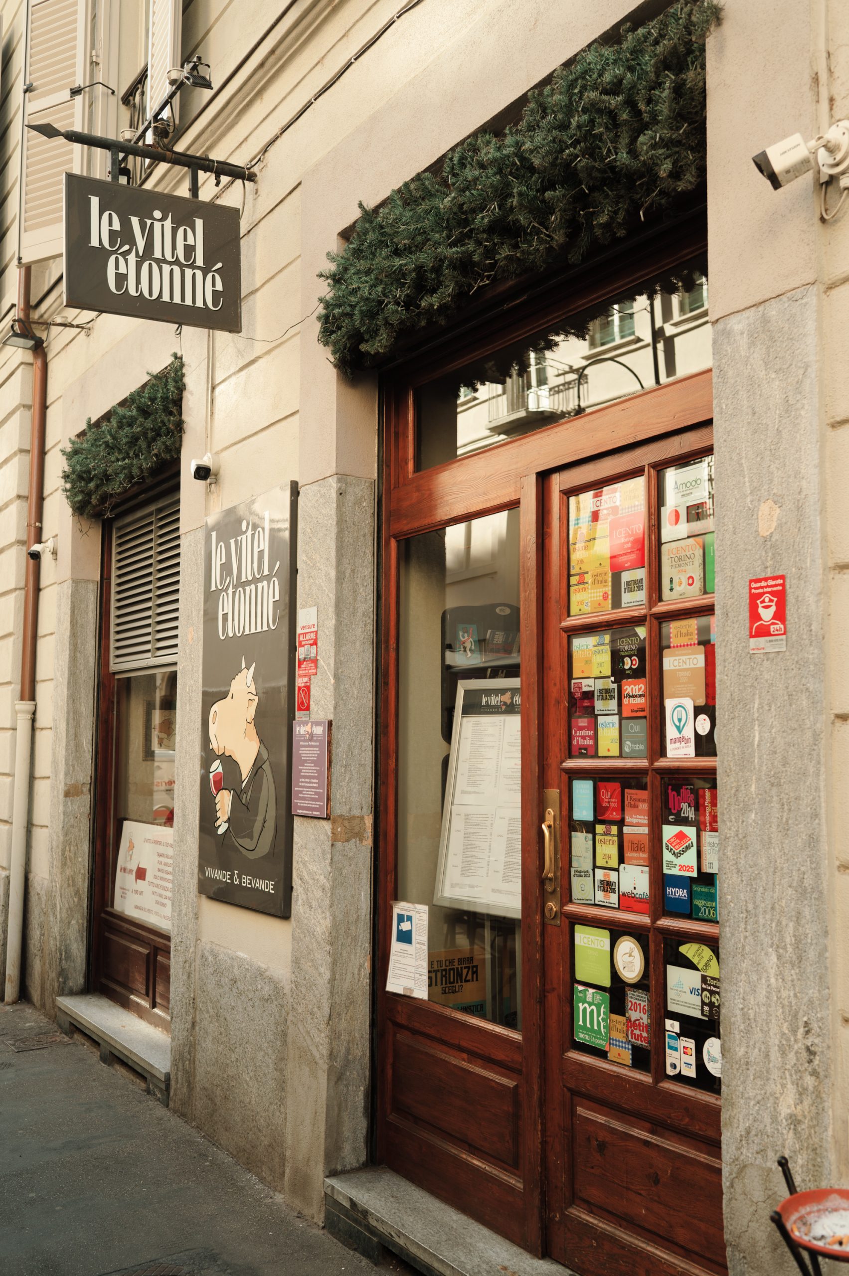 Oggi, nella stessa via si trova anche un pastificio, la cui pasta fresca è utilizzata nella cucina del ristorante, ma può anche essere gustata in loco o portata a casa. Gioiele, il vitello immaginario che abita l’insegna, è stato disegnato da Bob Noto, rinomato gastronomo, fotografo e pubblicitario torinese. La sua espressione stupita — etonné, in francese — ci suggerisce di entrare.
