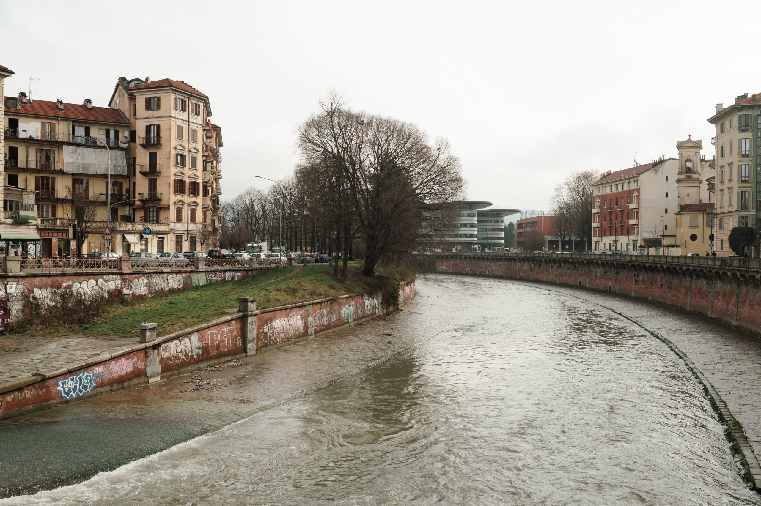 Qui il corso d’acqua disegna un’ampia curva e corre verso il Campus Luigi Einaudi, sede dell’Università di Torino progettata dal celebre architetto inglese Norman Foster e simbolo della nuova Torino universitaria. Il campus, lo studentato e le vicine abitazioni popolari formano un interessante polo di aggregazione, a cui si uniscono gli spazi verdi di viale Mai e corso Farini, entrambi oggetto di interventi di rigenerazione. Questa è anche l’area degli storici impianti Italgas e, non si offenda Foster, ma i veri “landmark” rimangono loro: le strutture cilindriche dei due vecchi gasometri di Vanchiglia.